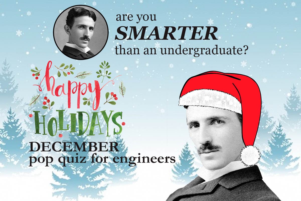 View Larger Image December Pop Quiz for Engineers ‘Tis the season for a good score on December’s engineering pop quiz! Are you smarter than an undergraduate? Start the Quiz KHudspeth2023-06-20T12:02:57-04:00December 7th, 2020|Engineering Fun, Pop Quiz for Engineers|0 Comments Related Posts March 2026 Pop Quiz for Engineers March 2026 Pop Quiz for Engineers March 6th, 2026 | 0 Comments February 2026 Pop Quiz for Engineers February 2026 Pop Quiz for Engineers February 9th, 2026 | 0 Comments January 2026 Pop Quiz for Engineers January 2026 Pop Quiz for Engineers January 12th, 2026 | 0 Comments Leave A CommentComment