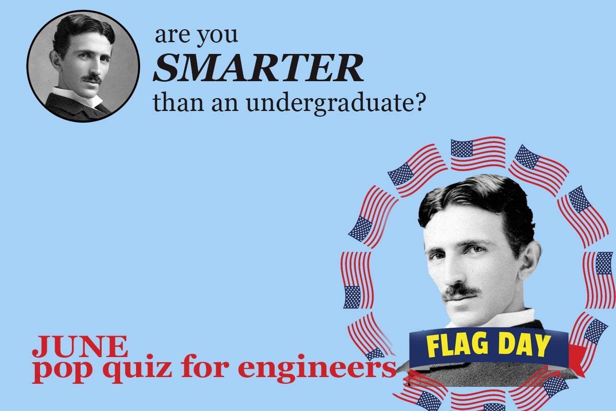 View Larger Image June Pop Quiz for Engineers Wave the flag if you do well on the June quiz. Are you smarter than an undergraduate? Start the Quiz KHudspeth2024-09-11T14:25:46-04:00June 8th, 2020|Engineering Fun, Pop Quiz for Engineers|0 Comments Related Posts March 2026 Pop Quiz for Engineers March 2026 Pop Quiz for Engineers March 6th, 2026 | 0 Comments February 2026 Pop Quiz for Engineers February 2026 Pop Quiz for Engineers February 9th, 2026 | 0 Comments January 2026 Pop Quiz for Engineers January 2026 Pop Quiz for Engineers January 12th, 2026 | 0 Comments Leave A CommentComment