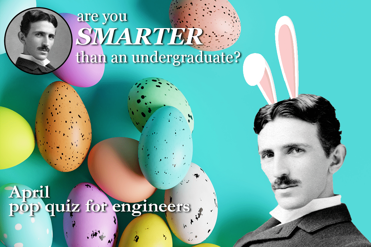 View Larger Image April Pop Quiz for Engineers Will you do EGGcellently on this month’s quiz? Here’s the April 2021 Pop Quiz for Engineers. Are you smarter than an undergraduate? Start the Quiz KHudspeth2024-09-11T11:28:13-04:00April 12th, 2021|Engineering Fun, Pop Quiz for Engineers|0 Comments Related Posts March 2026 Pop Quiz for Engineers March 2026 Pop Quiz for Engineers March 6th, 2026 | 0 Comments February 2026 Pop Quiz for Engineers February 2026 Pop Quiz for Engineers February 9th, 2026 | 0 Comments January 2026 Pop Quiz for Engineers January 2026 Pop Quiz for Engineers January 12th, 2026 | 0 Comments Leave A CommentComment