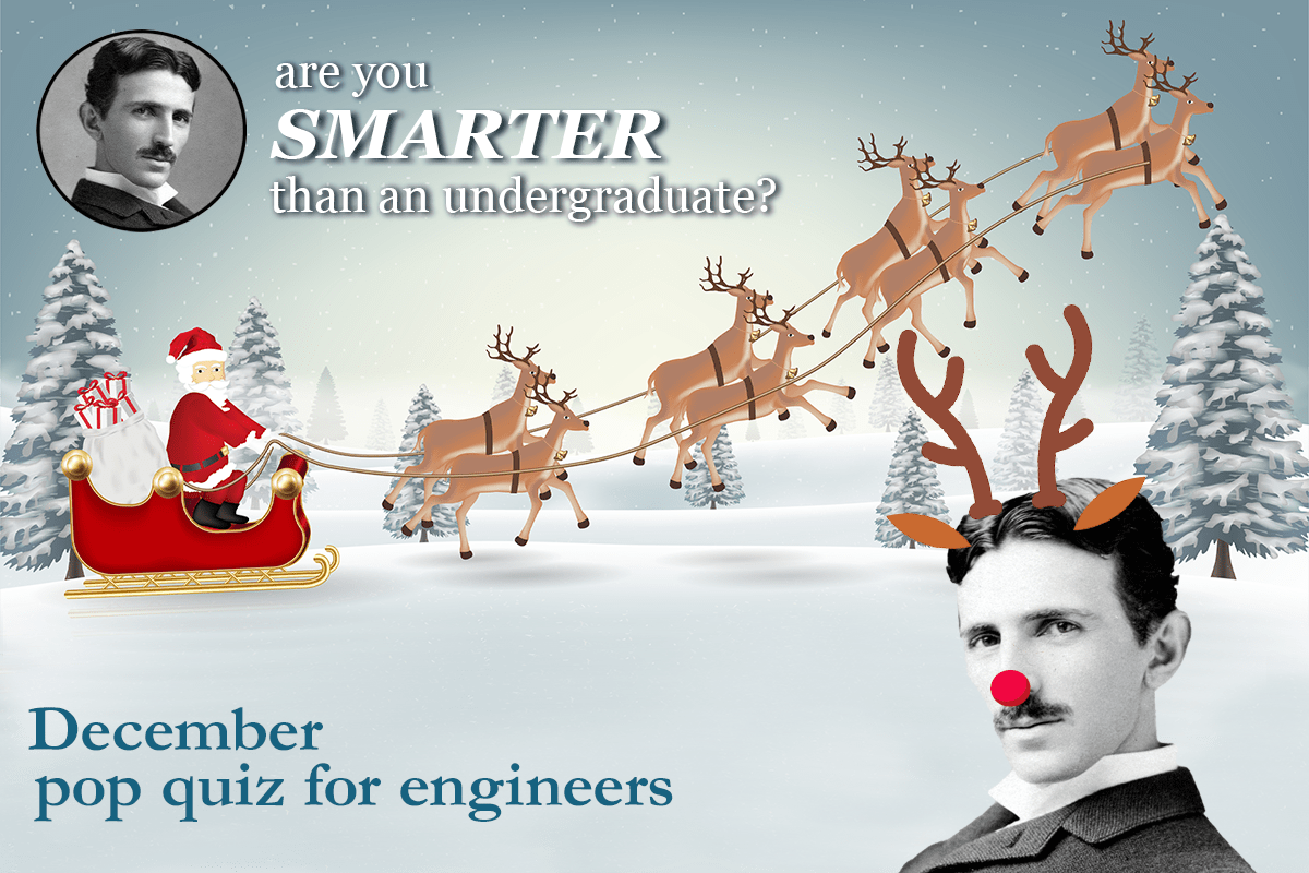 View Larger Image December Pop Quiz for Engineers Will you SLEIGH this month’s quiz? Here’s the December 2021 Pop Quiz for Engineers. Are you smarter than an undergraduate? Start the Quiz KHudspeth2024-09-11T14:19:39-04:00December 13th, 2021|Engineering Fun, Pop Quiz for Engineers|0 Comments Related Posts March 2026 Pop Quiz for Engineers March 2026 Pop Quiz for Engineers March 6th, 2026 | 0 Comments February 2026 Pop Quiz for Engineers February 2026 Pop Quiz for Engineers February 9th, 2026 | 0 Comments January 2026 Pop Quiz for Engineers January 2026 Pop Quiz for Engineers January 12th, 2026 | 0 Comments Leave A CommentComment