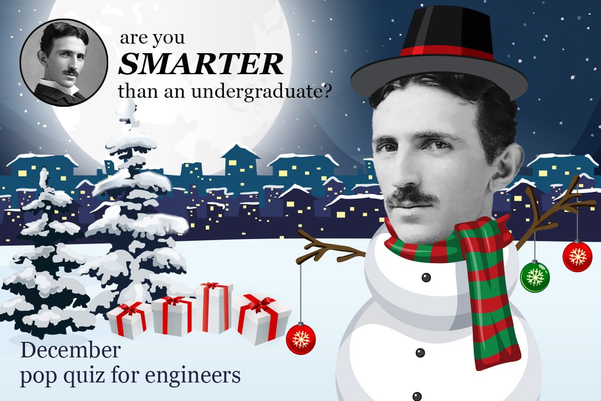 View Larger Image December 2022 Pop Quiz for Engineers Get in the HOLIDAY SPIRIT and score high on this month’s quiz. Here’s the December 2022 Pop Quiz for Engineers. Are you smarter than an undergraduate? Start the Quiz KHudspeth2023-06-20T11:55:07-04:00December 12th, 2022|Engineering Fun, Pop Quiz for Engineers|0 Comments Related Posts March 2026 Pop Quiz for Engineers March 2026 Pop Quiz for Engineers March 6th, 2026 | 0 Comments February 2026 Pop Quiz for Engineers February 2026 Pop Quiz for Engineers February 9th, 2026 | 0 Comments January 2026 Pop Quiz for Engineers January 2026 Pop Quiz for Engineers January 12th, 2026 | 0 Comments Leave A CommentComment
