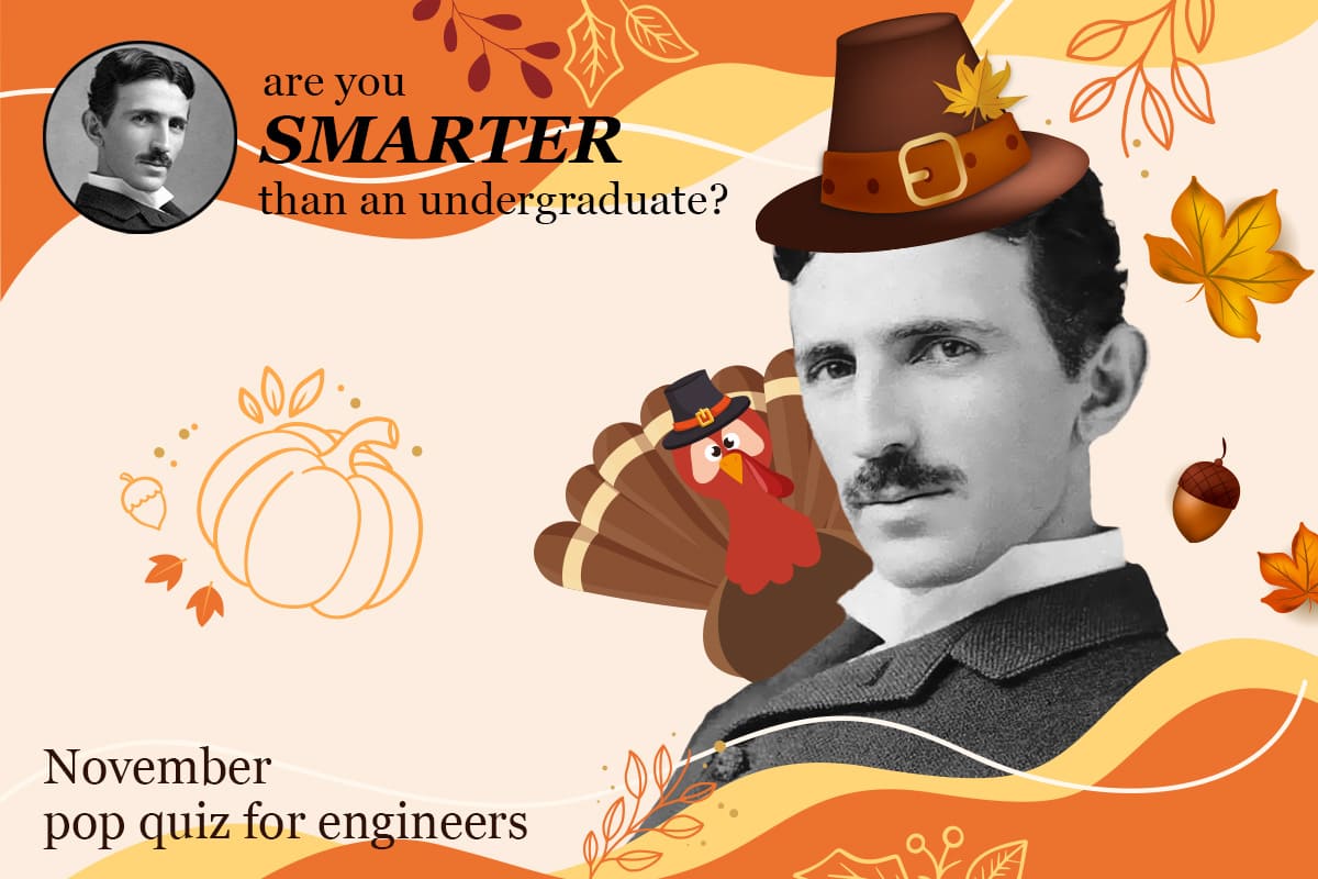View Larger Image November 2022 Pop Quiz for Engineers Nothing makes a person look smarter than wearing a PILGRIM’S HAT. Will your score be high enough to remove the hat? Here’s the November 2022 Pop Quiz for Engineers. Are you smarter than an undergraduate? Start the Quiz KHudspeth2023-06-20T11:54:38-04:00November 7th, 2022|Engineering Fun, Pop Quiz for Engineers|0 Comments Related Posts March 2026 Pop Quiz for Engineers March 2026 Pop Quiz for Engineers March 6th, 2026 | 0 Comments February 2026 Pop Quiz for Engineers February 2026 Pop Quiz for Engineers February 9th, 2026 | 0 Comments January 2026 Pop Quiz for Engineers January 2026 Pop Quiz for Engineers January 12th, 2026 | 0 Comments Leave A CommentComment