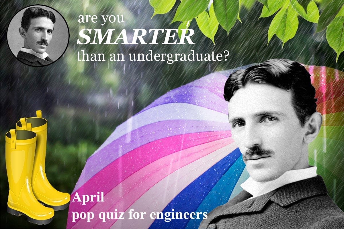 Will your score on this month’s quiz keep you from getting drenched from the APRIL SHOWERS? Here’s the April 2023 Pop Quiz for Engineers. Are you smarter than an undergraduate?