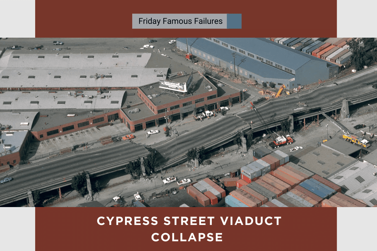The plans for the Cypress Viaduct were drawn up in 1949 as part of the Nimitz Freeway, or I-880. The viaduct was a two-tier highway with five lanes per deck. Because of the geology of the area, much of the bridge was constructed on soft mud, as the bedrock was over 150 meters below the surface. While in construction, the California State seismic criteria required planning for a lateral force of 0.06 times the dead load. While advancements in engineering technology progressed over the proceeding years, the Cypress Street Viaduct was not adequately restructured to withstand a large-scale earthquake. When the Magnitude 7.1 Loma Prieta earthquake struck, tragedy ensued. During the earthquake, a 1.4-kilometer section of the Cypress Viaduct collapsed. As the upper level fell, slabs of concrete trapped many unsuspecting motorists.