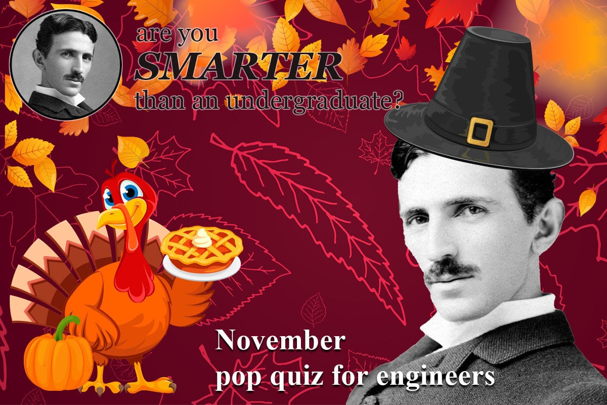 Nothing makes a person look smarter than wearing a PILGRIM’S HAT. Will your score be high enough to remove the hat? Here’s the November 2023 Pop Quiz for Engineers. Are you smarter than an undergraduate?