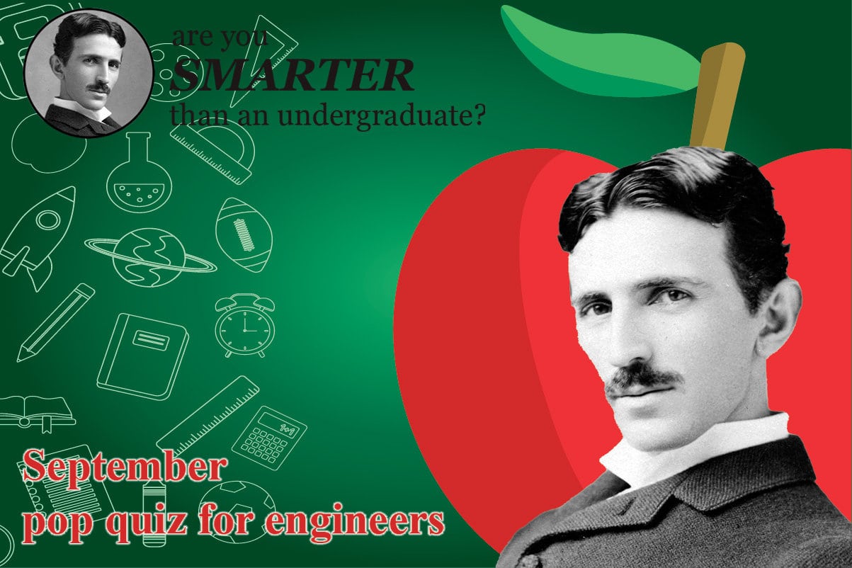 View Larger Image September 2023 Pop Quiz for Engineers The only FORMULA for a higher quiz score is to be smarter than an undergraduate. Here’s the September 2023 Pop Quiz for Engineers. Are you smarter than an undergraduate? Start the Quiz KHudspeth2023-07-10T17:26:18-04:00September 11th, 2023|Engineering Fun, Pop Quiz for Engineers|0 Comments Related Posts March 2026 Pop Quiz for Engineers March 2026 Pop Quiz for Engineers March 6th, 2026 | 0 Comments February 2026 Pop Quiz for Engineers February 2026 Pop Quiz for Engineers February 9th, 2026 | 0 Comments January 2026 Pop Quiz for Engineers January 2026 Pop Quiz for Engineers January 12th, 2026 | 0 Comments Leave A CommentComment