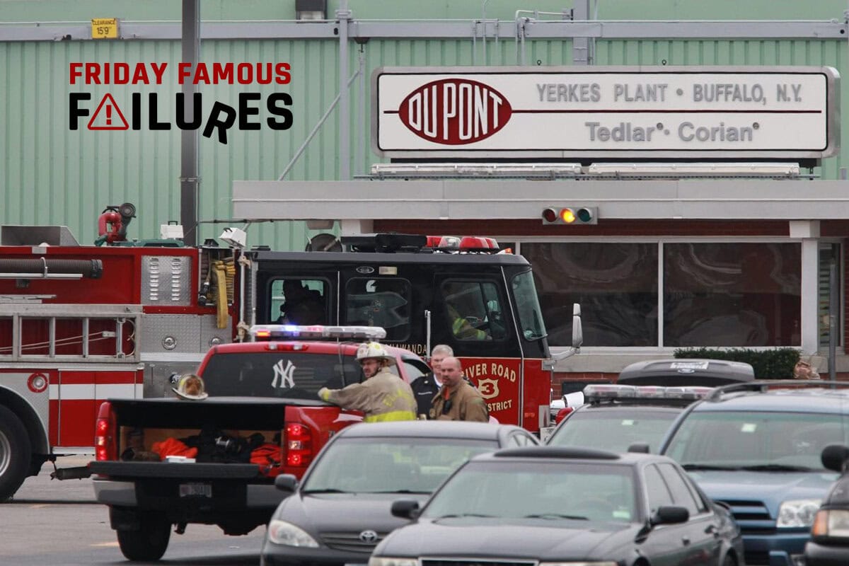It should have been a day of routine maintenance on November 9, 2010 at the DuPont plant in North Tonawanda, New York. Tank 1, which normally contained 10,000-gallons of polyvinyl fluoride (PVF), a slurry used in manufactured countertops, had been cleaned and inspected in preparation for repairs. All relevant procedures had been followed and all paperwork completed. The team performing the work had climbed up to the top of the tank on the catwalk and began grinding and welding to repair the equipment.