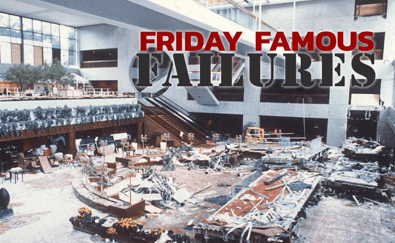 On the night of July 17, 1981, the newly built Kansas City Hyatt Regency hotel was hosting a dance contest in its atrium, presented by a local radio station. Partygoers thronged the floor of the atrium and the three catwalks above, which were located on the 2nd, 3rd, and 4th floor levels. Suddenly, there was a loud crack, and the 4th floor catwalk collapsed down on the 2nd floor catwalk below it, and both fell to the floor of the atrium.